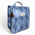 Featuring a single handle, a spacious zip compartment, and six interior pockets, the Blue Cotton Road PVC Hanging Vanity Bag with PROTEAS is expertly designed for optimal organization.
