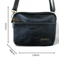 The BLACK EMBOSSED PU Leather Cotton Road Mini Sling Bag masterfully balances style and functionality, featuring three zippered compartments, a front zip pocket, and a rear zip pocket to maximize storage. Its adjustable, detachable shoulder strap ensures versatile and comfortable wear.