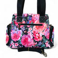 Cotton Road Floral Canvas Handbag with BLACK PU Leather Trim