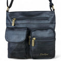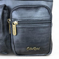 BLACK PU Leather Cotton Road Sling Bag with Pockets