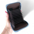 Master your card organization with this blue floral card holder, constructed from durable PVC engineered for reliable everyday performance. The clear identification window grants instant access to your ID without rummaging, while eleven compartments systematically store your payment cards and vital paperwork. A secure zippered closure shields your valuables against loss during regular commuting and travel. This holder represents a sophisticated solution for those seeking dependable card management paired with understated floral design appeal.
