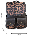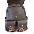 Crafted from durable PU leather in rich brown, this Cotton Road backpack combines practical functionality with distinctive animal print accents. The design features a single carry handle paired with adjustable shoulder straps for versatile wear options. Organization is streamlined with a main zip compartment beneath a secure clip flap, twin front clip pouches, dual side zip pockets, and a dedicated rear zip compartment—ideal for separating essentials and valuables. Perfect for daily commutes or weekend travel.