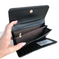 Perfectly paired, the matching wallet combines sleek design with exceptional organisation. Inside, you’ll find 11 card slots, 2 clip sections, 5 note compartments, and a zippered coin pocket, all arranged for effortless access. An ID window and rear zip compartment provide added convenience and security for your valuables, making it the ideal companion for busy days.