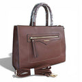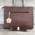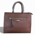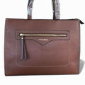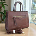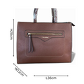 This everyday handbag showcases premium brown PU leather construction built to withstand regular use. Dual handles deliver ergonomic carrying comfort, while the detachable shoulder strap adapts to your preferred wear style. Interior organization features a main zip compartment for essentials, complemented by a rear exterior pocket designed for quick-access security. The refined silhouette bridges contemporary aesthetics with functional design—a versatile piece that transitions seamlessly across occasions.