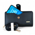 Carry your essentials with confidence using this versatile sling wallet. Crafted from durable PU leather, it features a striking black finish complemented by a patterned pocket detail. The adjustable, detachable shoulder strap allows hands-free convenience, while the thoughtfully organized interior includes 15 card slots, 2 note compartments, and a dedicated ID window. Multiple storage options—including a main zip compartment, inner zip pocket, external clip compartment with strap, and rear zip pocket—ensure everything stays secure and accessible. Perfect for daily use or travel.
