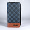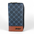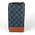 Large Printed CHARCOAL BLACK PU Leather Cotton Road Wallet with TAN Trim