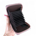 Keep your essentials organized with this mauve floral card holder, crafted from durable PVC for lasting performance. The clear ID window provides instant access to your identification without searching, while eleven dedicated slots organize your payment cards and important documents efficiently. A dependable zip closure secures everything in place, whether you're navigating daily commutes or traveling. Designed with practical sophistication, this holder combines protective functionality with understated style.