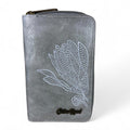 Medium GREY Cotton Road PU Leather Wallet with EMBROIDERED PROTEA