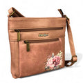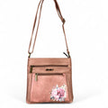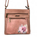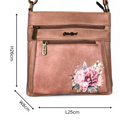 The PINK PU Leather Cotton Road Sling Bag with FLORAL detailing combines functionality and style, featuring three zippered compartments and an extra rear pocket for generous storage. Its adjustable shoulder strap provides ease and comfort for varied carrying preferences.