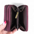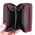 This compact maroon wallet combines practical design with everyday functionality. Crafted from durable PU leather, it features dual zip compartments for secure storage, four dedicated card slots for essential cards, a specialized coin pocket with zip closure, and two additional pockets for versatile organization. An ideal choice for those seeking a streamlined accessory that doesn't compromise on capacity.