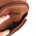 The TAN BROWN Cotton Road PU Leather Cross Body Bag / Mini Backpack offers a single adjustable over the shoulder strap, two zippered sections, a front clip pocket, and a rear zippered compartment, ensuring practical and well-organized storage for your essentials.