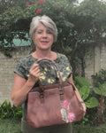 Crafted with precision, this BROWN PU Leather Cotton Road Handbag showcases intricate PROTEA detailing. It is designed with dual handles and a removable, adjustable shoulder strap for flexible wear. The handbag features a main zippered compartment divided into two sections, complemented by a front clip pocket and a rear zippered compartment, providing ample and organized storage space.