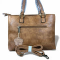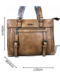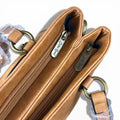 Crafted with meticulous attention to detail, this camel-toned Cotton Road handbag seamlessly blends functionality with refined aesthetics. The dual-handle design pairs effortlessly with an adjustable shoulder strap for versatile carrying options. Inside, discover two zippered compartments and a dedicated front zip pouch for organized storage, while a rear zip section provides additional security for essentials. Premium PU leather construction with signature buckle detailing elevates this piece as a sophisticated everyday companion.