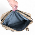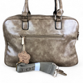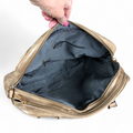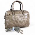 Experience the perfect blend of fashion and practicality with the KHAKI EMBOSSED PU Leather Cotton Road Handbag. This handbag features two handles and an adjustable shoulder strap with a brand logo, in addition to two zippered compartments, as well as a central front pocket and a back section for enhanced organization and storage options.
