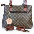 Enhance your style with this Printed BROWN PU Leather Cotton Road Handbag, featuring TAN Trim and a Twin Handle design with a detachable Adjustable over the Shoulder Strap. This handbag offers two Zip Compartments for secure storage, as well as a Back Zip Compartment for easy access.