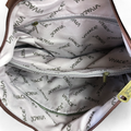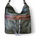 Crafted by the skilled designers at Vivace, this GREEN PU Leather Handbag showcases a sophisticated Brown Trim and a practical over-the-shoulder strap. With a zippered section, interior divider, and several front and back zip pockets, it offers expertly crafted organization for all your essentials.