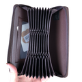This card holder from Cotton Road, made of high-quality BROWN PU leather, boasts a single zip compartment with an ID/Drivers License pocket and an impressive 27 card slots to keep all of your important cards organized and easily accessible.