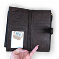 Large BROWN Cotton Road PU Leather Wallet with CLIP