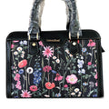 BLACK Cotton Road PU Leather Handbag with FLORAL Panel