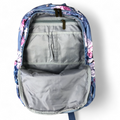 This backpack features two zip compartments with padded inner lining and two center front zip pouches, along with a back zip compartment and twin side pockets. Made with BLUE FLORAL canvas cotton, this backpack is both functional and stylish.