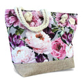Built from quality canvas with complementary hessian reinforcement, this tote balances strength with sophisticated style. The delicate floral design adds timeless charm to your collection. Dual rope handles provide reliable support for daily use, while a zippered compartment secures your belongings. A dedicated interior pocket streamlines organization of personal essentials. The hessian trim enhances both durability and visual character, making this bag a versatile choice for beach excursions, weekend getaways, and everyday carry.