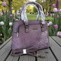Elegant with a distinctive finish, the Cotton Road Handbag: PURPLE PU Leather Bag with EMBROIDERY blends structured design with refined decorative detail. Crafted from durable PU leather, it offers the smooth look of genuine leather while remaining lightweight and easy to maintain. The rich purple tone adds a bold yet sophisticated touch, while the embroidered accents introduce texture and subtle visual interest.
