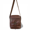 Crafted from resilient PU leather in a timeless brown finish, this sling bag delivers both form and function for the modern user. Its adjustable shoulder strap adapts to your preferred carry style, while a thoughtfully organized interior—featuring a primary zip compartment, front zip pocket with protective flap cover, and rear zip access—ensures your essentials remain secure and accessible. The distinctive front buckle clip serves as both a design accent and practical fastening element. Whether navigating the office, exploring new destinations, or managing daily routines, this piece seamlessly transitions across contexts with understated sophistication.