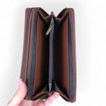 The Large BROWN PU LEATHER Cotton Road wallet featuring the PROTEA design is tailored for individuals who value superior organization. It includes two zippered compartments, eight card slots, four note sections, and a coin zip pouch, offering practical and efficient storage for all your essentials. Combining elegant style with functionality, this wallet serves as a sophisticated accessory for those with dynamic, demanding lifestyles.