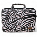 The Cotton Road PVC Laptop Bag / Carry Sleeve is designed with a padded inner and a striking ZEBRA print. Featuring a twin handle design and a detachable, adjustable shoulder strap, this bag has a single zip compartment, front pocket, and back pocket with a trolley strap.