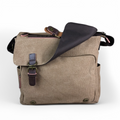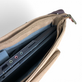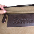 The Cotton Road Canvas Laptop Bag combines practical design with refined aesthetics, featuring a khaki canvas exterior accented by rich brown PU leather trim. Engineered to accommodate 15.6" laptops, this bag delivers organized storage through multiple compartments: a dedicated laptop pocket, center front zip section with additional front pocket beneath a clip flap, twin side pockets, and rear zip compartment. The adjustable over-the-shoulder strap ensures comfortable carrying for daily commutes or travel, while the structured construction maintains professional appearance in any setting.