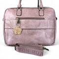 Enhance your daily work gear with the PINK Cotton Road PU Leather Laptop Bag with FLOWERS. Designed for the modern professional, it features dual handles and an adjustable BRANDED shoulder strap for versatile carrying. With two zippered compartments, the main zippered compartment houses a padded laptop sleeve to protect your device, while a further two front pockets and a rear zippered section with a trolley strap offer generous storage options. This laptop bag combines practicality with sophisticated style, making it an essential accessory for your workday.