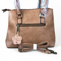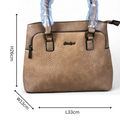 This sophisticated camel-toned handbag combines practical design with refined aesthetics. Crafted from durable PU leather, it features an eye-catching embossed panel that adds textural interest. The versatile twin handles accommodate hand-carrying, while the detachable, adjustable shoulder strap offers flexible styling options. Dual zip compartments—including a convenient front pocket and rear storage—ensure organized carrying for daily essentials. An ideal accessory for those seeking both functionality and understated elegance.