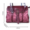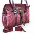 MAROON Cotton Road PU Leather Handbag with EMBOSSED FLORAL Panel