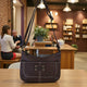 The KHAKI PU Leather Cotton Road Sling Bag includes an adjustable and removable shoulder strap, two zippered main compartments, a practical Front Clip Pocket, and an additional Back Zip Compartment for easy organization.