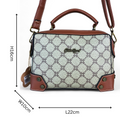 The Printed KHAKI Cotton Road PVC Sling Bag features a TAN Trim with a Single Handle and Removeable Adjustable over the Shoulder Strap. The bag has Two Zip Compartments with an inside zip pouch and a single pocket along with a Back Zip Compartment.