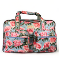 This specific BLUE PVC Overnight Cotton Road Travel Bag has twin handles and a adjustable shoulder strap for added convenience. It also includes a single zip compartment and four front zip pouches, providing ample space for all your storage necessities.