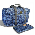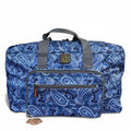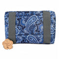 This BLUE PAISLEY Cotton Road weekender bag merges practical design with understated elegance. Constructed from durable PVC material, it features a spacious main compartment with secure zip closure and multiple front pockets for efficient packing organization. The classic paisley motif delivers visual sophistication without compromising on utility. Purpose-built for weekend excursions and short-haul travel, the bag's foldaway design maximizes portability while its reinforced structure ensures reliable performance across repeated journeys. An intelligent choice for travelers seeking refined aesthetics paired with dependable functionality.