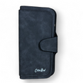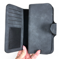 This large CHARCOAL BLACK Cotton Road wallet boasts one zip compartment, 14 card slots in three clip compartments, 6 note pockets, and 2 ID/drivers license windows.