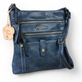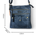 This BLUE PU Leather Cotton Road Sling Bag boasts a sleek Metal Zip design and an Adjustable Shoulder Strap for enhanced comfort. It also houses a Single Zip Compartment, Twin Front Zip Compartments, and a convenient Clip Pocket with Back Zip pocket on the back, making it a practical and stylish choice.