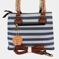 The Cotton Road handbag delivers understated elegance paired with robust construction. Its navy and white striped PVC body withstands daily use while maintaining a polished finish, complemented by PU leather trim in coordinating tones. Versatile carrying options—twin handles and a removable, adjustable shoulder strap—adapt to your lifestyle. Strategic storage features, including dual zip compartments and dedicated front and rear zip pockets, keep belongings organized and protected. A sophisticated everyday essential for discerning shoppers who prioritize both longevity and refined style.