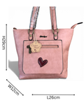 This Cotton Road handbag pairs rich salmon pink PU leather with a charming embossed heart accent. Engineered for versatility, it features twin handles for hand-carry comfort and an adjustable shoulder strap for cross-body styling. The thoughtfully organized interior comprises a main zip compartment, front zip pocket for immediate essentials, and rear zip pocket for valuables. A refined everyday piece that seamlessly balances visual appeal with intelligent storage solutions for the modern user.